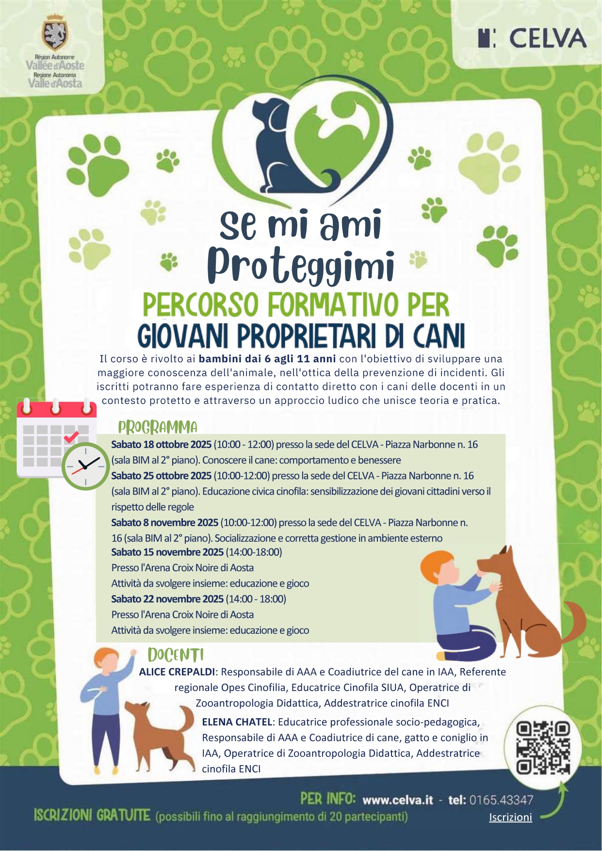 Il corso è rivolto ai bambini dai 6 agli 11 anni con l’obiettivo di sviluppare una maggiore conoscenza dell’animale, nell’ottica della prevenzione di incidenti. Gli iscritti potranno fare esperienza di contatto diretto con i cani delle docenti in un contesto protetto e attraverso un approccio ludico che unisce teoria e pratica.